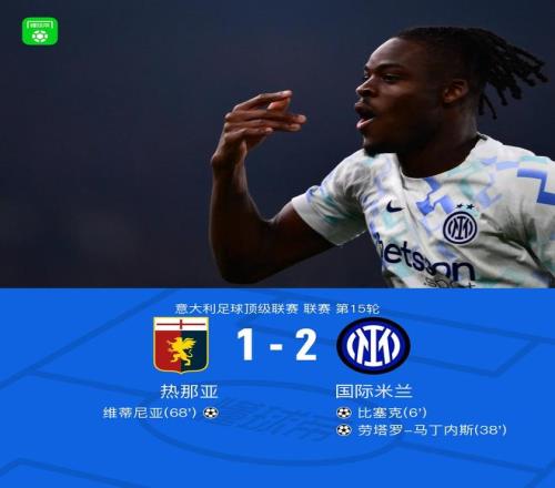 北京时间12月15日1:00,意甲第15轮继续进行,国际米兰作客费拉里斯球场挑战热那亚,本场主裁判为多维里。上半场,比塞克内切低射闪击,劳塔罗传射建功。下半场,维蒂尼亚为热那亚扳回一城。最终,国米2-1客胜热那亚,联赛登顶。