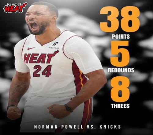 值得一提的是,这不是鲍威尔近期第一次打得这么出色了,就在三天之前,热火客场118-112战胜东部第一的活塞,鲍威尔全场23中12,三分14中7,罚球5中5,拿下了36分2篮板2助攻,36分也是鲍威尔本赛季的单场第二高分。